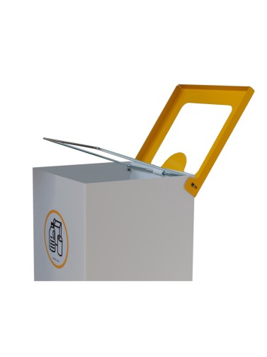White metallic recycling bin 44L with bag holder ring and flip-top lid in 5 colorsKey BenefitsIn-house manufacturing ensures strict quality control and offers the possibility of customization. Flip-top lid available in 5 colors...