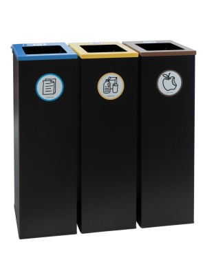 Poubelle de recyclage en métal noir pour 4 types de déchets. Avec anneau de maintien pour sac. Capacité de 176 litresPoubelle de recyclage en métal pratique et utile avec quatre compartiments, chacun ayant une capacité de 44 litres. Chaque compartiment est équipé...